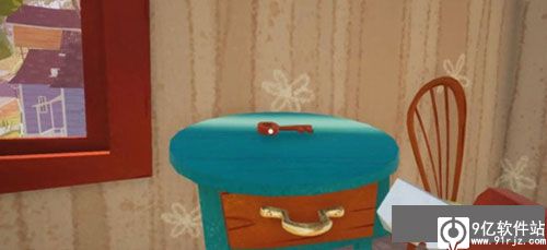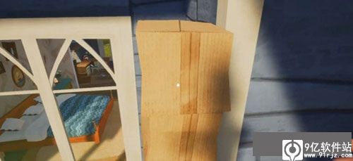 2、邻居家的钥匙在左边二楼红窗旁边蓝色的桌子上,在自己家一楼卧室拿到纸箱子,去邻居家门口左边梯子上去放上两个纸箱子,然 后跳到屋檐上。