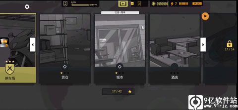 包含停车场、货仓、城市、酒店等多个主题,每个主题自成一派。