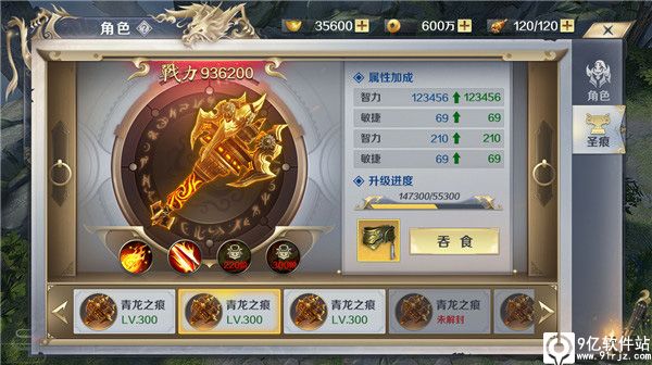 3、该游戏有一个圣痕的系统,这个系统可以大幅度地提升你的战力,当你打出圣痕材料的时候不要犹豫,马上把它给吃了,因为每种圣痕材料都只能提升相应的圣痕等级,所以打出圣痕材料赶紧吃了吧。