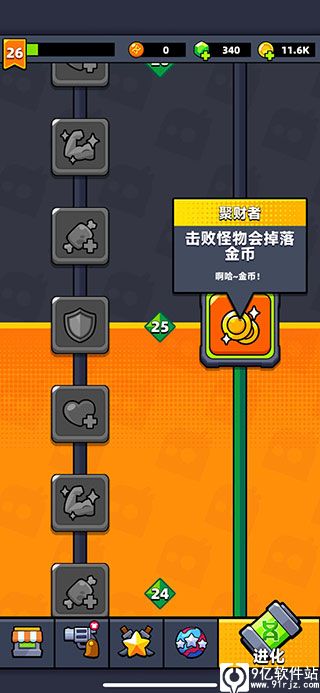 2、到第4章跑酷,优先选择金币加成、拾取范围、跑步速度。
