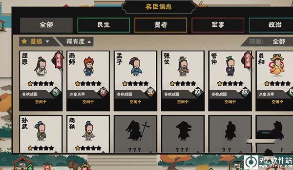 作为经营模拟的手游,以历史题材为主,最主要的玩法是确定发展国家的策略,从而努力获胜,下面小编介绍一下手游名臣强度榜,从而让玩家快速熟悉游戏角色。姜尚也就是姜子牙,是游戏中的名臣,在军事方面的才能首屈一指,从而实现快速扩张,赢得副本的胜利。姜子牙一技能提升攻击力,拥有提升金钱消耗的负面作用。它二技能提升胜利的民心,三技能属于专属卡牌,完成封神。