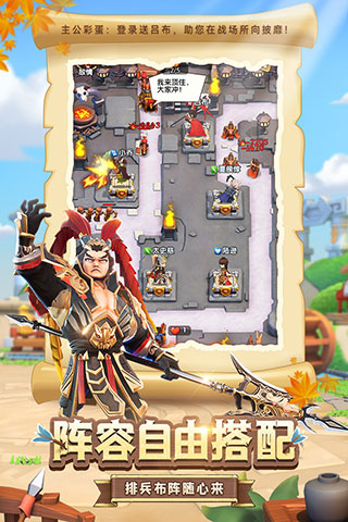 1、经典塔防 排兵布阵 千变万化游戏继承了首作全民主公1塔防以及卡牌为一体的特点,以经典塔防战斗还原三国时代宏大的战场,以丰富的NPC还原三国时期千变万化的战争局势。