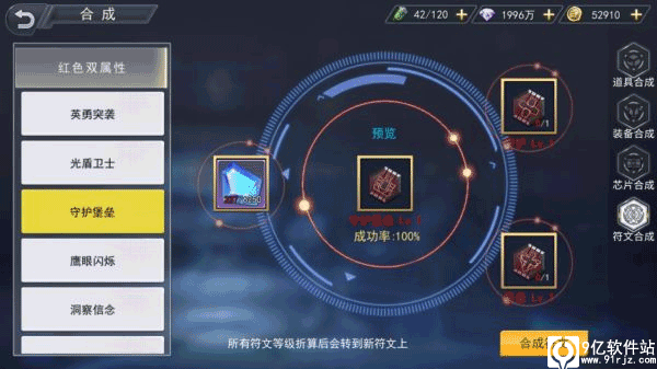 然而,付文孔的有限,会很大程度扼制玩家对符文的需求,随着小伙伴们的战力提升,对符文的要求也会越来越高。所以符文的合成也将应运而生。这里的合成是说的双属性符文,紫色属性的符文才能和相应的符文进行合成,合成后的符文,将会拥有双重属性,也能进一步的满足小伙伴们对符文的更高的要求。