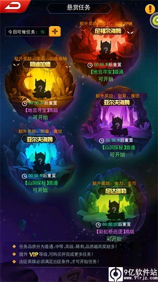 悬赏任务是塔防纪元九游版前中期的一种辅助玩法,玩家可以统筹利用时间积累更多的资源。任务品质分为普通、中等、高级、稀有,品质越高奖励多!