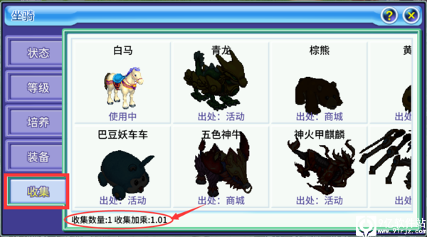 座骑收集达一定数量会有数值加乘,收集越多坐骑外观可获得越多的加乘