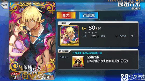 这件礼装满级HP加成2250,也是一件防御礼装,效果是强化耐性25%,满破30%。这件礼装适合在敌人技能拥有消弱我方英灵能力的副本使用。