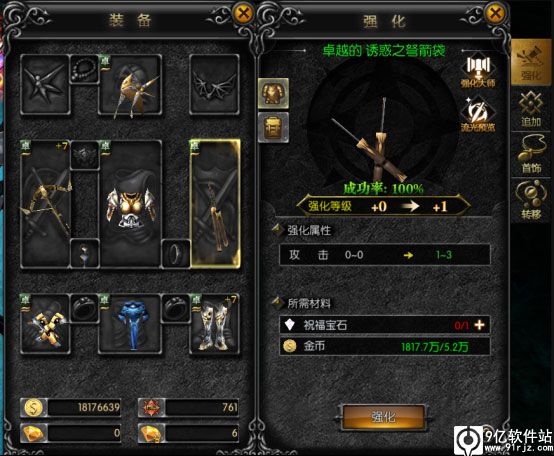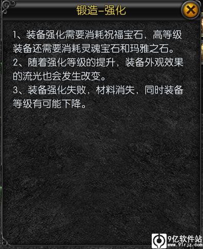 需要消耗对应的材料和金币,低强化等级的装备在强化的时候需要消耗祝福宝石,