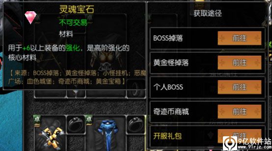 把装备强化7-9星时需祝福晶石+灵魂晶石