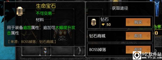 生命宝石可以通过BOSS掉落等方式获得