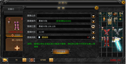 还可以在摆摊时长4、9、12小时中任选一个,不过摆摊是要消耗摆摊卷的,一张摆摊卷可以摆摊4小时,如果玩家要摆摊12小时就需要消耗3张摆摊卷。摆摊卷可以在商城中购买,每张1000奇迹币,还是很便宜的。