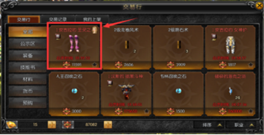 您可以根据这些交易分类,迅速地找到您想要购买的道具装备。