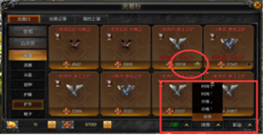 交易存在公示时间,即装备材料上架后需展示一段时间,这段时间内看中该物品的玩家都可以付款进行预购,公示时间结束后随机抽取一名玩家获得装备,其余玩家将会退款至邮箱。玩家可在预购区查看自己预购的装备。一般装备公示时间为2小时,材料类为30分钟。公示&预购机制的出现保证了玩家购买装备的公平性,让玩家购得稀有装备材料的机会大大增加,确保了广大玩家的利益。