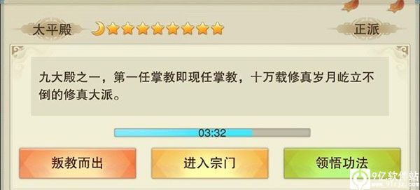 点击“叛教而出”,会根据门派的等级扣除一定的声望,使得玩家重新回到无门派的散修状态,以便再次刷自己想刷的门派。