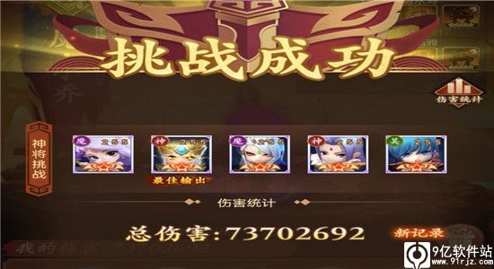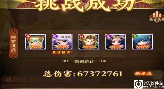 阵容:魔菜,神猪,魔司马,神郭嘉,陆逊 站位:221阵型(雁阵) 附图如下 备注:该阵容的最高伤害估计在8kw左右,当然还有其他阵容同样可以打出更高的伤害