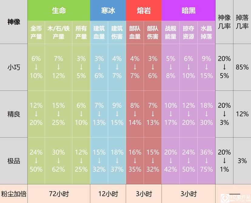 3、掠夺神像资源的重要性不用多言,掠夺神像可以让进攻玩家或者NPC所获得总资源的百分比加成。