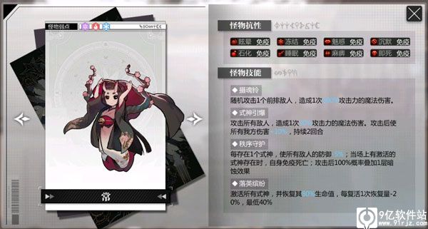 有如此技能的存在就意味着,必须要先攻击掉其身边的式神后才能对常本身造成致命的攻击,因此人偶师们需要在4个回合内破盾并击杀掉式神。考虑到式神分别有2层和3层盾建议在此层选择有火/魔法/冰霜AOE破盾能力的人偶出阵(比如柯露雪儿、朔耶真子),再配合上一位强有力的单点输出来击杀常!