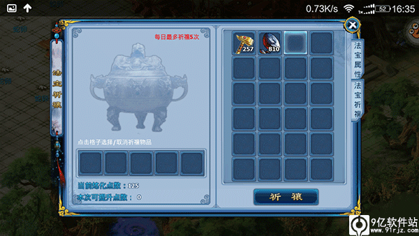 冰冻三尺非一日之寒,所以法宝牛掰也非获得就牛掰了,和天命系统一样,需要升级,才可以实现实力的飙升,这就需要每日祷告,每日祷告五次,获得提升点,现阶段除了系统开始送的石头可以吃掉获得1W提升值以外,就靠消耗玄铁和锤子,来获得点数。所以别再发愁锤子和玄铁占包裹,应该呐喊锤子和玄铁砸死我吧。