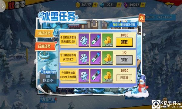 活力挑战分为两个游戏赛道,分别是初级赛道、高级赛道。初级赛道共有10个关卡,挑战每个关卡所需10点活力值而高级赛道只有6个关卡,但每次挑战需要消耗12点活力值。活动第一天即可先后挑战初级、高级两种赛道。通关游戏赛道可获得雪花、金币道具。