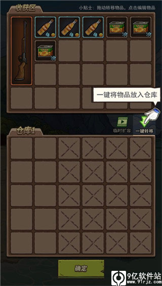 5、将得到的物资可以存到仓库中就可以开始冒险了