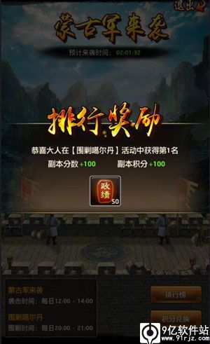 (3)围剿葛尔丹:围剿成功后根据排名获得政绩