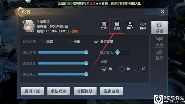 3、输入页面上方小编提供的礼包码,然后点击【确定兑换】,上方显示“礼包兑换成功,请邮件查收”即可;