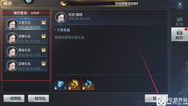 5、然后我们就能看到刚刚兑换的礼包啦,最后我们点击【领取】就行啦,也可以一键领取全部的礼包哦。