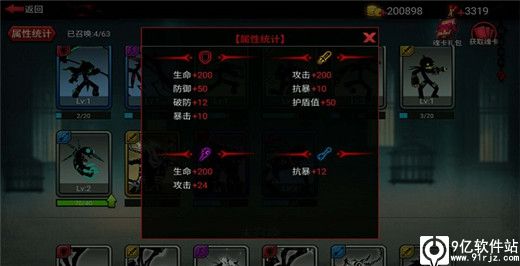 虽然火柴人联盟2是以动作格斗为主要元素,但是对于火柴人的养成部分,系统还是从多个方面进行了诠释的,首先就是英雄的升级和进阶,但是要注意的是在这里等级是有限制的,由于英雄的等级是不能超过玩家们自身的等级,所以前期等级的发展则会缓慢一点,而英雄的进阶则是随着等级提升,属性不断提高,同时我们也可以在英雄的技能、符文、装备等方面让其战力更强!当我们集所有资源养成了一位强力的英雄之后,就可以开始游戏正式的闯关了,在这里小编要着重强调一下该手游的操作性,由于支持浮空连招和必杀闪现等动作设定,意味着玩家在手游中具备相当大的操作空间,配合各种技能的连招,往往能够打出完美的combo,从而将对手直接连到死,而过程中的打击手感也是顶级,特效也是相当炫酷,我们还有什么理由拒绝这样一款诚意满满的手游呢,心动的小伙伴就快来9亿软件站下载火柴人联盟2破解版试试吧!