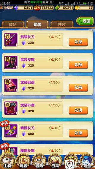 装备的选取前期就用冒险装备即可~后期用紫色的武装~对于流氓的我来说~近期正在 全面换武装紫装~通过装备商店利用装备结晶换取装备碎片~然后合成装备~也可通过扫荡掉落紫装碎片的副本~不过掉率特别低