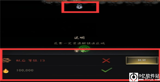 1、区域解锁不同阶段解锁对应区域要求不同,下图是蚁后13级解锁区域的条件。