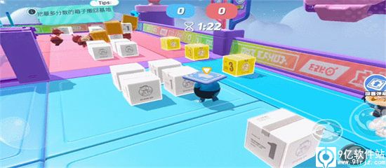 1、巧用道具运箱子,干扰对手夺胜机比如在搬箱子这种积分赛中,场地会有一些道具可以让我们进行高段跳跃,为了胜利,这种时候我们要快速布置道具,让自己和队友都能快速搬运方块得分。