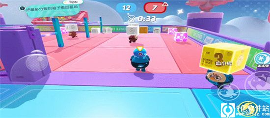 除此之外,我们还可以去到对方的场地干扰对手,不但可以扔道具扔蛋仔,还可以直接把场地上的方块拿走,变成己方的分数哦。