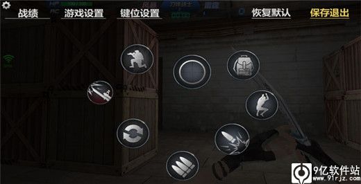 游戏画面左下角有一个圆圈状的虚拟按钮,右下角有个未显示的虚拟按钮,玩家通过滑动虚拟按钮控制人物的动作。其中左下角的虚拟按钮控制移动右下角的虚拟按 钮控制准星和射击。同时,在画面左上角设置按钮中有战绩查询、游戏设置、键位设置功能,左下角有蹲下按钮,画面右侧分布有跳跃、切换武器、换子弹、扔手雷 等按钮。