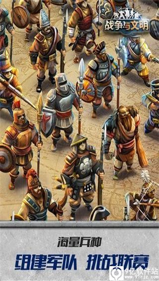 战争与文明国际服是一款自由度极高的模拟经营战斗策略游戏,这款游戏采用了欧式风格设计,从游戏剧情到场景设置以及人物造型都是欧式风格,让玩家可以真实感受到一段刺激的欧式冒险,在游戏中玩家将扮演一名这片领地的主人,你需要不断的建造城池,建造你的王国,招募更多能干的勇士为你保驾护航,守卫这片领土。游戏中还有很多兵种,比如气势磅礴的骑兵、征战沙场的步兵以及拥有爆发性输出的弓箭手,这些兵种玩家可以随意搭配阵容,不断培养他们增强他们的属性和战斗力,在发展到一定实力后可以对其它王朝作战,扩大领地,最后统一这片大陆。