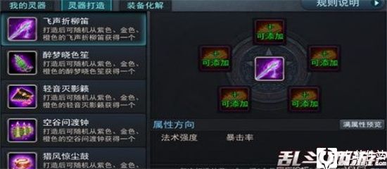 2.每次打造将从所选类型的灵器中获得一个,品级随机;品级越高的灵器获得几率越低。