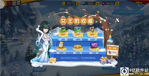 挑战首领队伍,一关更比一关难,类似于“爬塔”玩法,每两天可通关卡数增加10关,通关即可获得对应的魂碎片、形象卡、雪花材料、金币奖励,从第十关起,每挑战5个关卡成功,可额外获得冰雪女王的照片箱,获得箱子数量为每次递增2个(即2、4、6、8、10个等)。