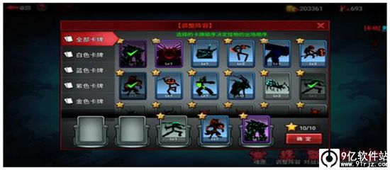 3、升级装备会使所有英雄的装备都升级,而且换装备也没有问题。升级装备需要铁矿和星陨,铁矿可以在矿洞获得,星陨一般是三人副本获得。但是装备升级在高等级的时候有几率失败,而且还会降级,所以要升满还是不容易的,当装备每升到10级的时候会有额外属性加成。