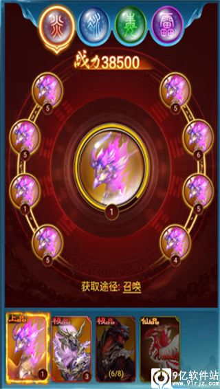 游戏中御魂也分四种属性,分别为炎、冰、毒、雷,每种属性按品质又分为上品、极品、仙品和神品,可通过激活和进阶御魂提升战力,御魂可通过召唤、开启秘宝、宗门祭坛、奇遇等方式获得。
