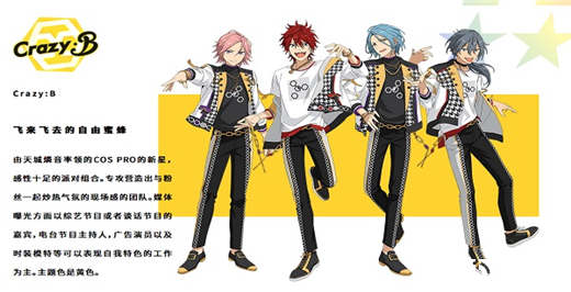 由天城燐音、HiMERU、樱河琥珀、椎名丹希四位美少年组成的全新音乐组合Crazy:B一经登场就在制作人们之间席卷起来不小的浪潮。下面就来一起了解一下全新组合Crazy:B吧!