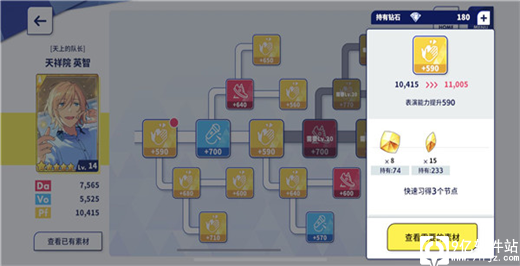 偶像之路:使用对应的道具或者钻石解锁格子,提高卡片的数值、技能、服装、才能绽放等。