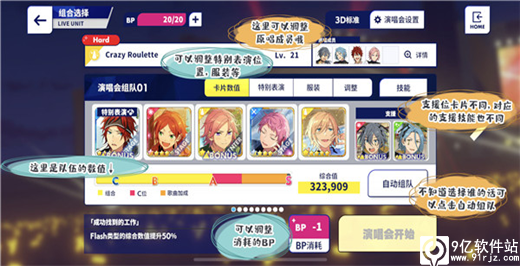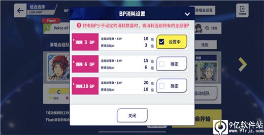 消耗BP调整:可以调整歌曲的BP消耗,BP消耗越多,单次收益越多。当BP为0时也可以进行演唱会。