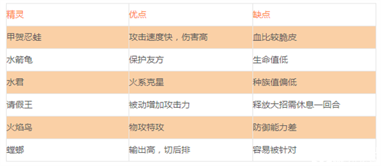 阵容精灵选取多为输出攻速。阵容位置摆放前排:火烈鸟、水箭龟、请假王;后排:甲贺忍蛙、螳螂、水君。