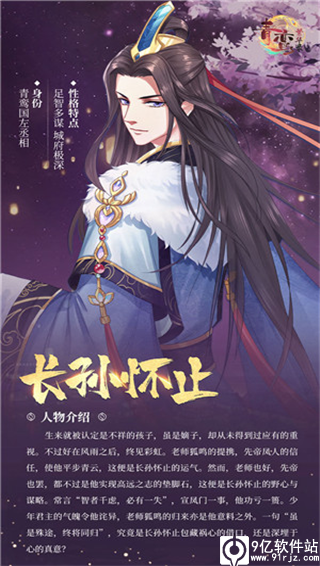 在青鸾繁华录华为版手游中,长孙子安是一位傲娇单纯、爱憎分明的公子。自幼养尊处优的环境,造就了他傲娇别扭、心口不一的性格。他时常任性而为,不懂得曲意逢迎,亦不喜约束,却又单纯而善良、敢爱敢恨。这样的他,其实是不适合进入皇宫的,但他偏偏又成为了凤离的侍君,被困入这座华丽的樊笼之中。对于凤离,随着不断的相处,他甚至逐渐分辨不出凤离时而流露的温柔与关心到底是出于真心,还是另有目的。等待他的结局,又会是什么呢……