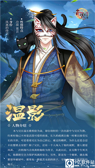 出身四大家族之一的温家。本与兄长温长歌相依为命,却在幼时的一次出游中与兄长失散。归来时他已不再是活泼可爱的孩童,长久的疏离让他一时难以接受兄长的关怀。表面看起来对兄长温长歌很嫌弃,其实心中很在意。除了兄长,还有一个人闯入了他的视野,那人便是凤离。一次机缘巧合凤离将他收为侍卫,从此以后,在无数个生死关头,他都拼尽全力保护凤离的安全。无论双林寨还是朱雀国,只要是关乎凤离的安危,他只有一句“神挡杀神,佛挡杀佛”。只是不知他可曾思量过,若哪一日倒下再也站不起来了,他唯一的兄长该是如何的伤心。另外,影还有一个秘密,就在凰都郊外破屋中,那里有一群孤苦无依的孩子,守护着他心中最柔软的地方