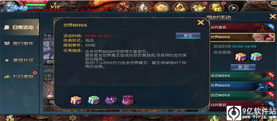 世界Boss身上都藏有众多的宝物及财富,只要前往征伐,人人都有奖可分!