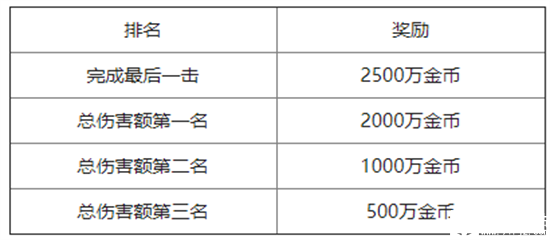 世界BOSS身上携带着惊人的财富,只要前往征伐,就可以获得大量的金币奖励!伤害总额前3名以及完成最后一击的神选者将能获得令人惊羡的海量金币。