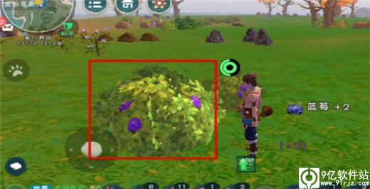 2、收获草莓后我们还需要收集蓝莓。蓝莓丛和草莓丛颜色一模一样,只不过草莓是红色的,蓝莓是蓝色的,蓝莓也是非常常见的水果。