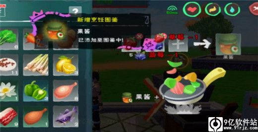 6、这样果酱就做完了,果酱可以+20食物,比单吃草莓或蓝莓加的属性要多。菜谱研究完成后可以使用“快速烹饪”功能批量做果酱。