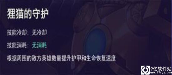 被动技能:狸猫的守护技能无CD时间无消耗。