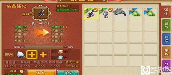 1、武器强化指南在游戏中,武器系统是战斗的核心之一。在获得自己心仪的武器后,玩家可以点击屏幕左上角的铁匠铺进入武器强化界面。需要注意的是武器的强化也需要一些技巧,下面就给大家分享一下这些小技巧,让大家在强化武器时更省心省力。