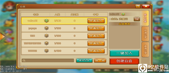 点击“创建公会”或“一键加入”或“申请加入”目标公会。